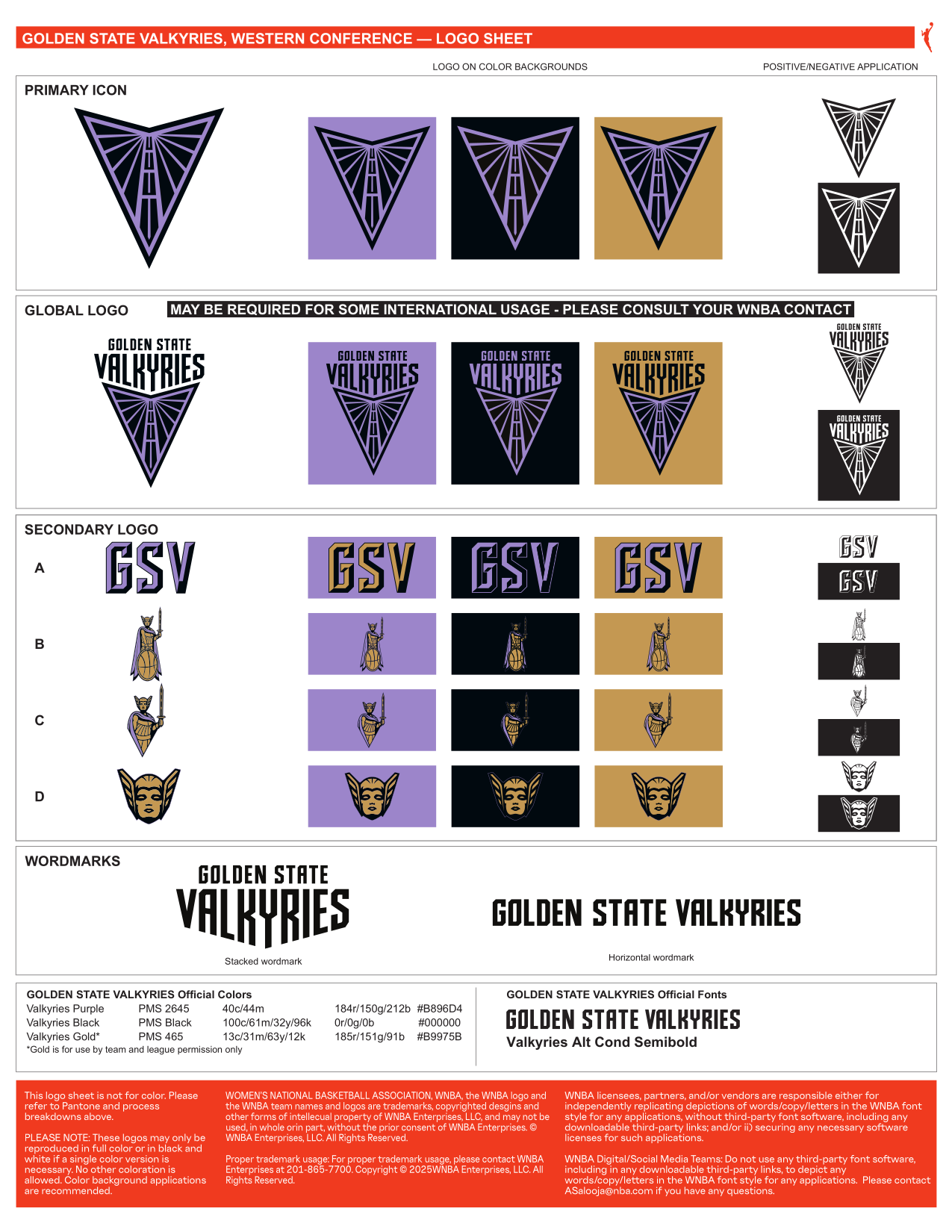 - ^ "Golden State Valkyries Reproduction Guideline Sheet" (PDF). WNBA Enterprises, LLC. Retrieved April 2, 2026.